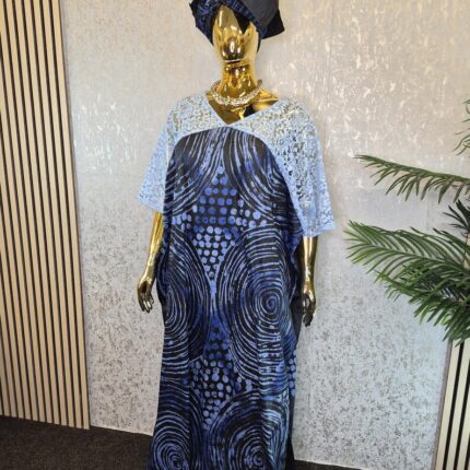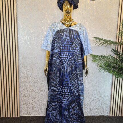 Ankara Kaftan Dress: Elegant African Boubou with Head Tie