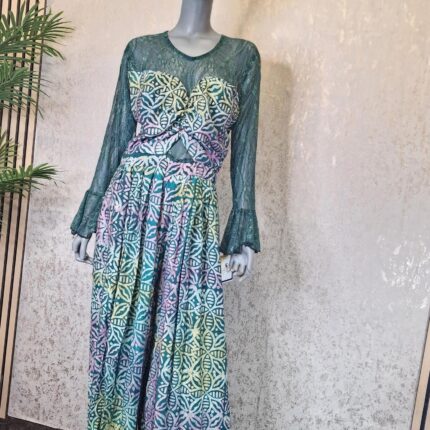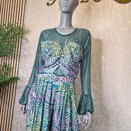 Original price was: £28.00.£20.00Current price is: £20.00.Adire Crepe Jumpsuit with Chantilly Lace