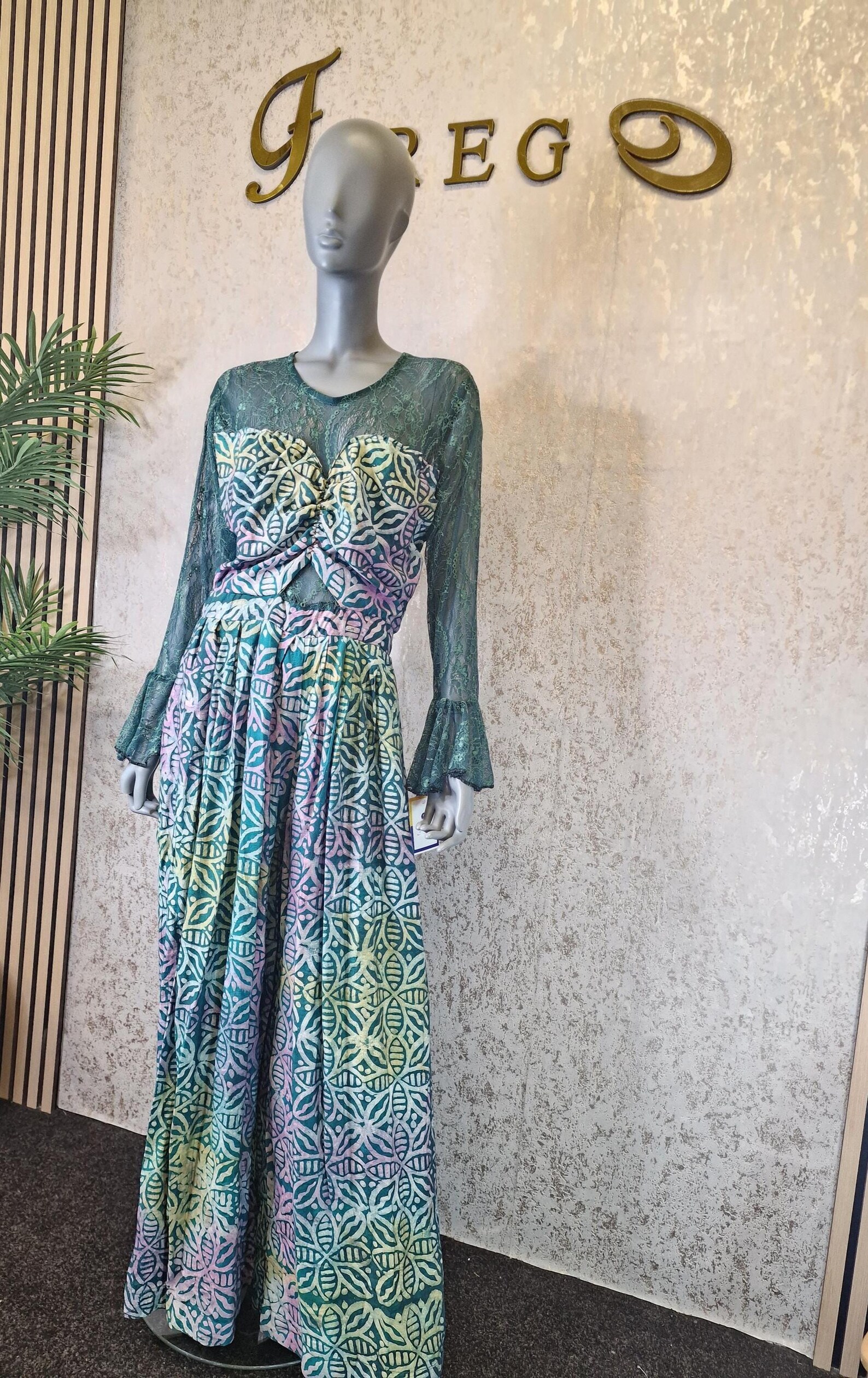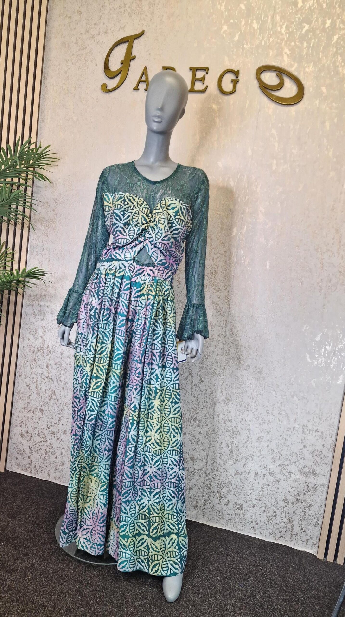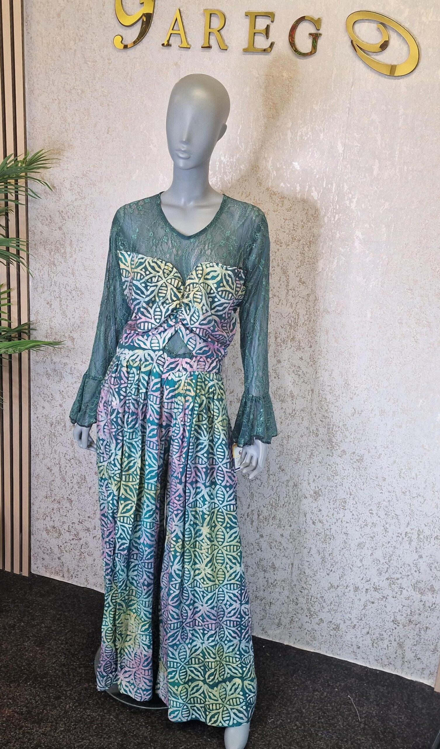Be the first to review “Adire Crepe Jumpsuit with Chantilly Lace”