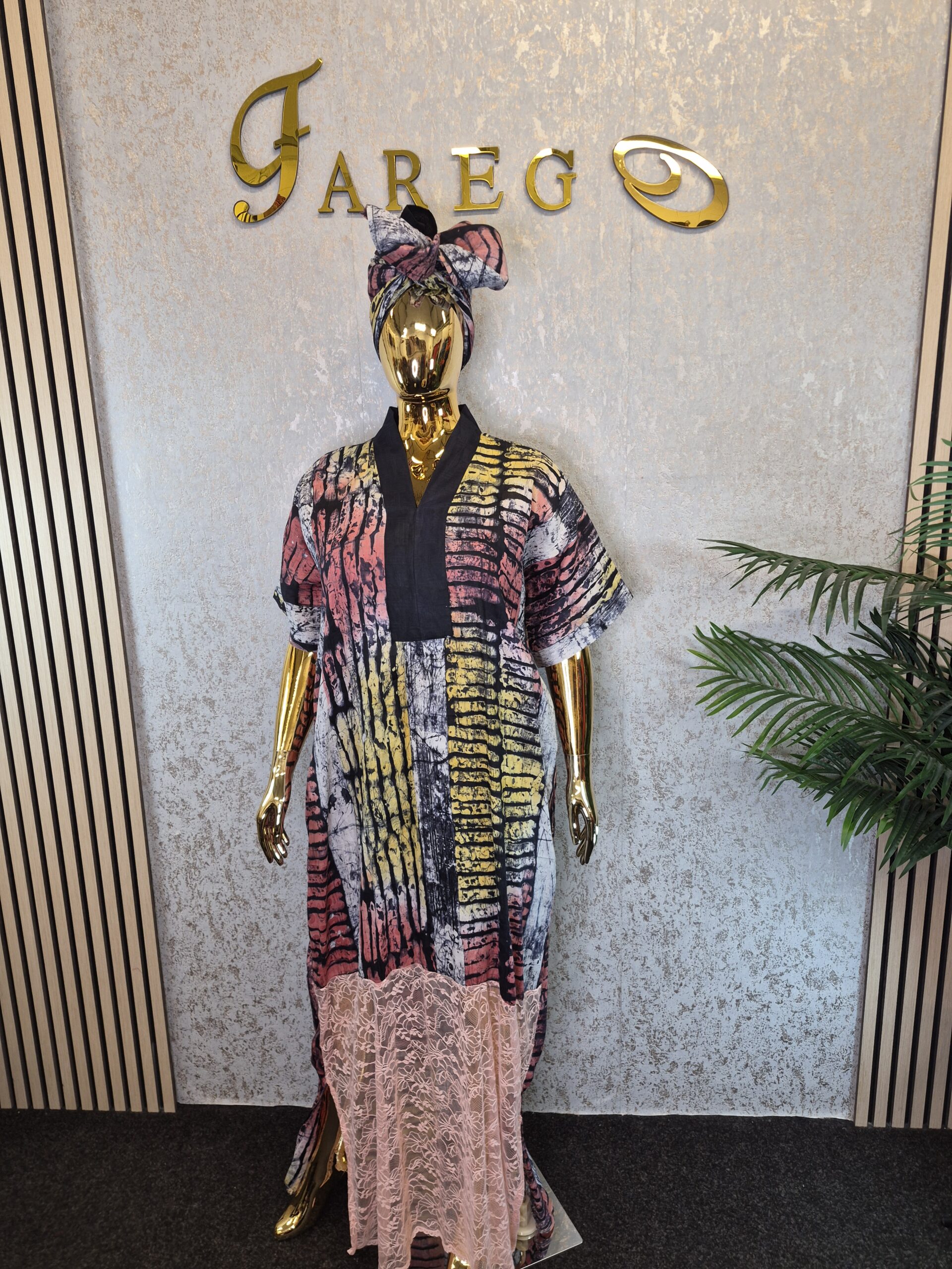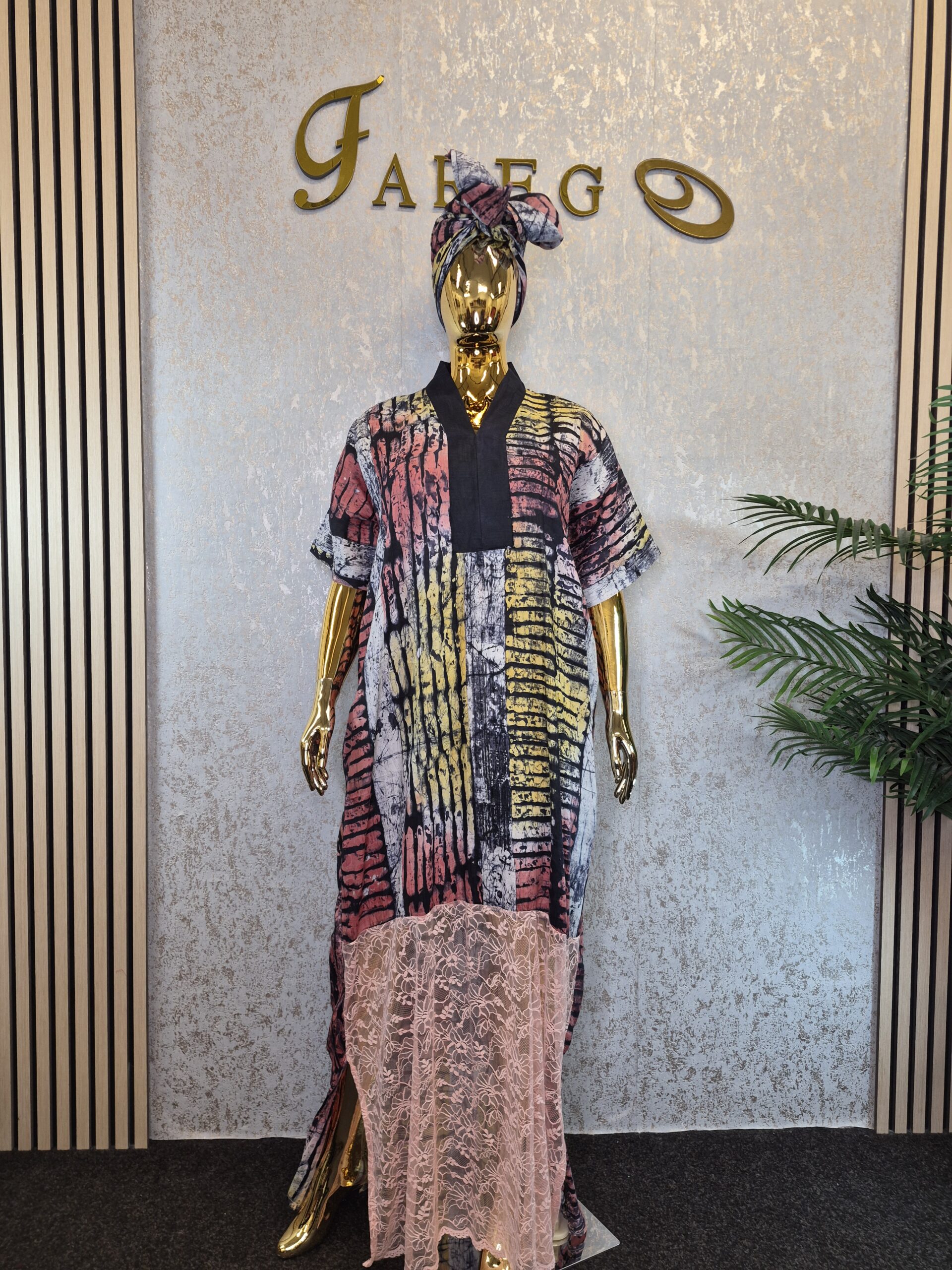 Adire Kaftan Dress with Chantilly laceUK 18