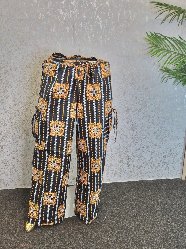 Ankara African Print Cargo Trousers, Women’s Wide Leg Pants