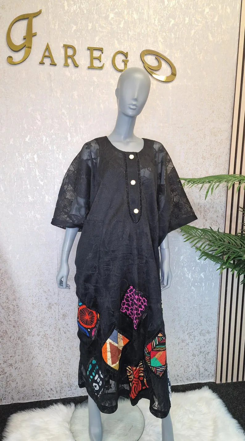 Ankara Patch Net Boubou Dress: Elegant Party Kaftan