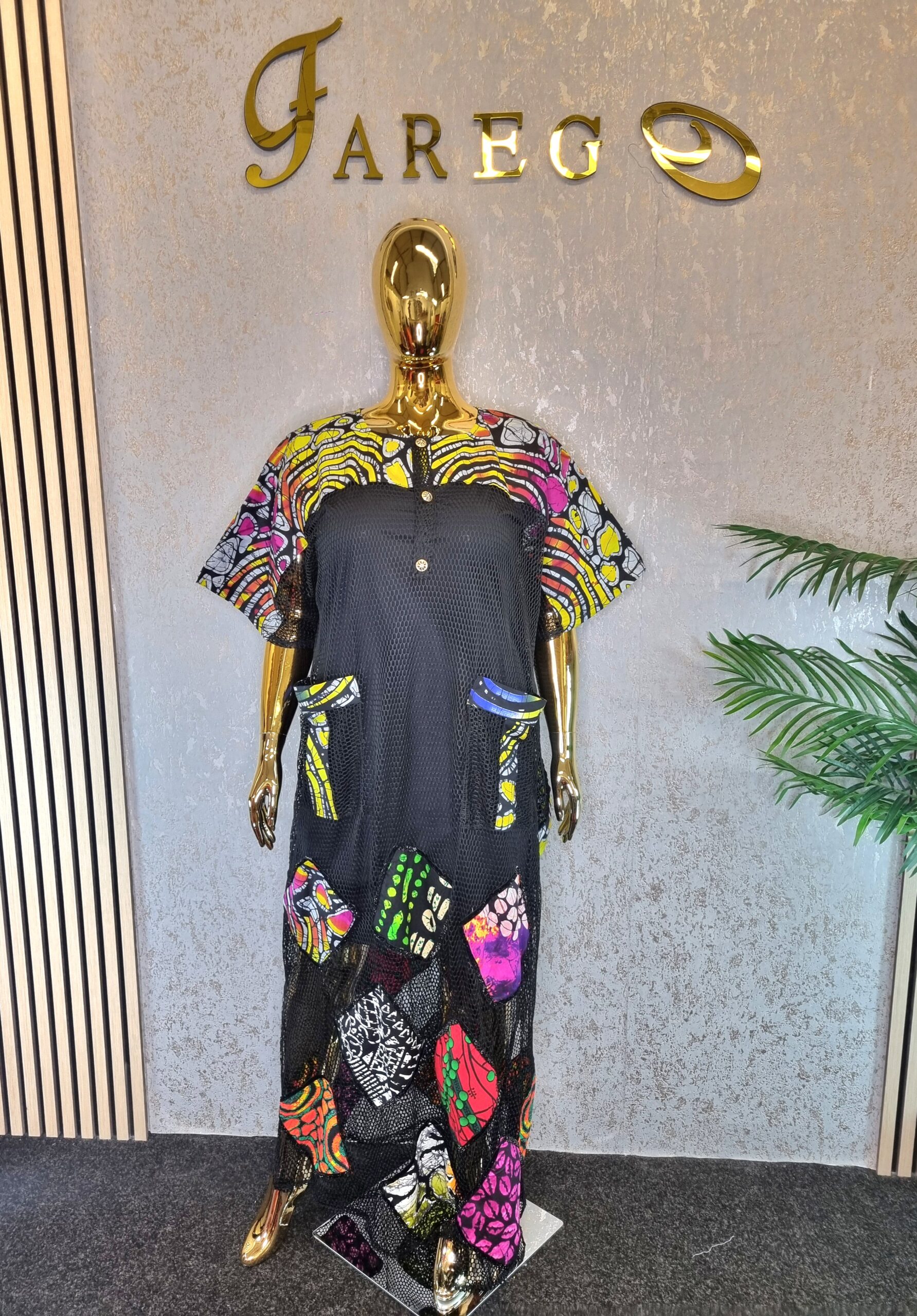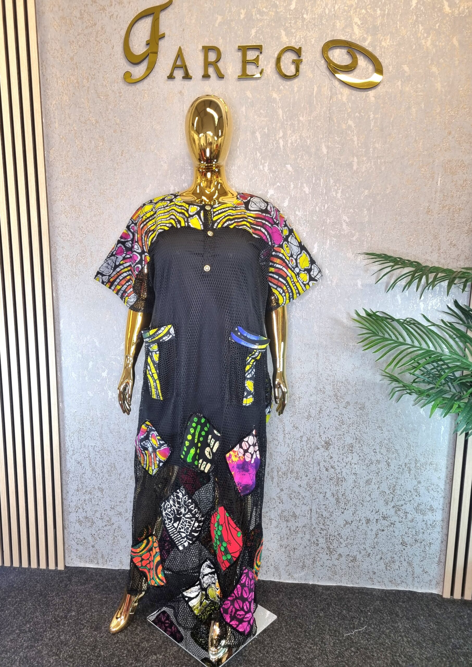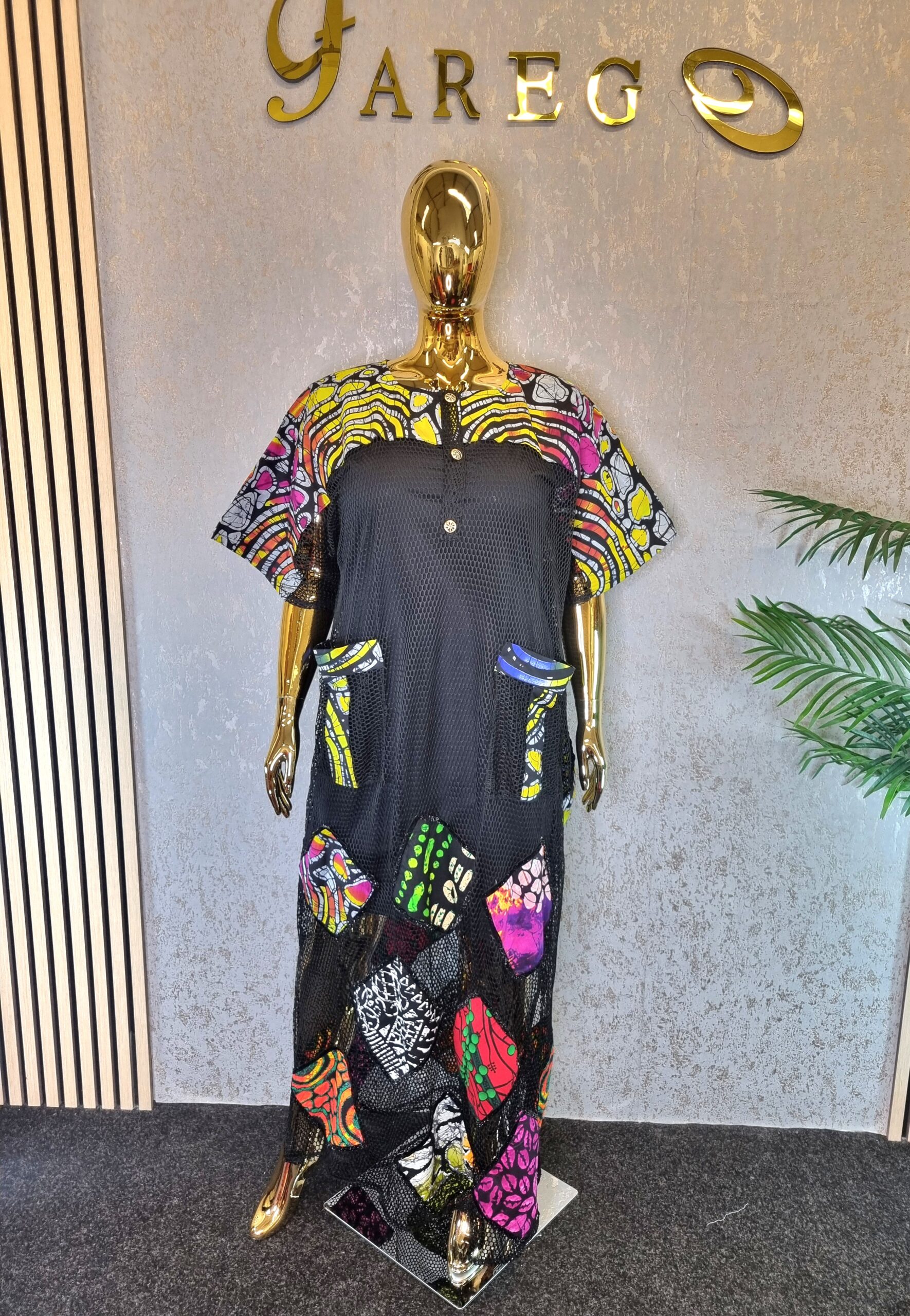 The Scuba Net Ankara patch boubou Dress is a free-flowing dress known for its comfort and unique style, suitable for a wide array of occasions.