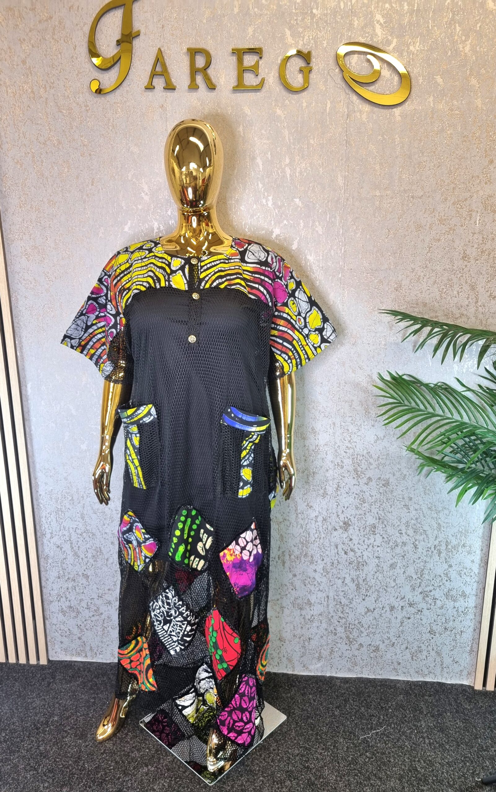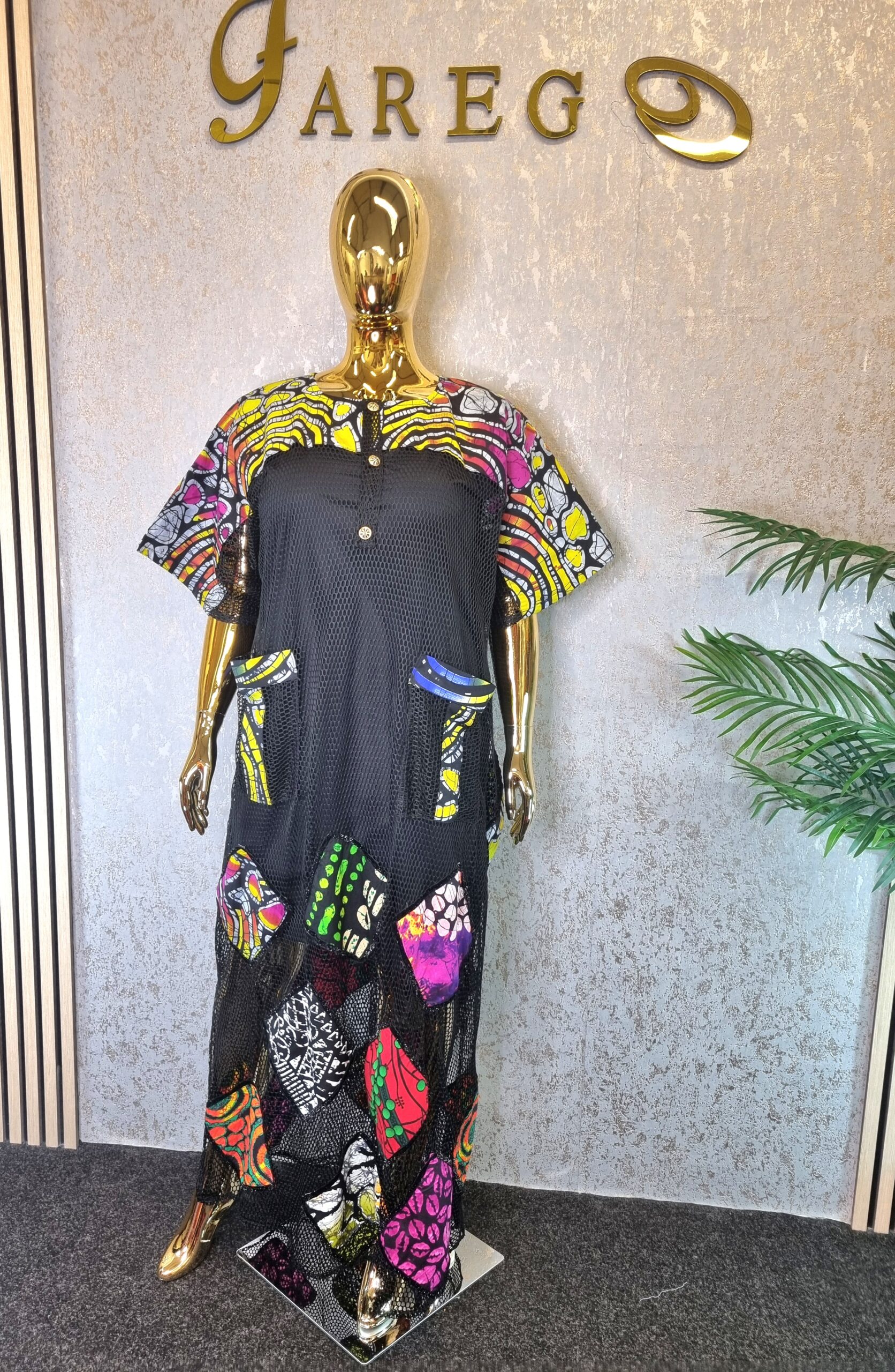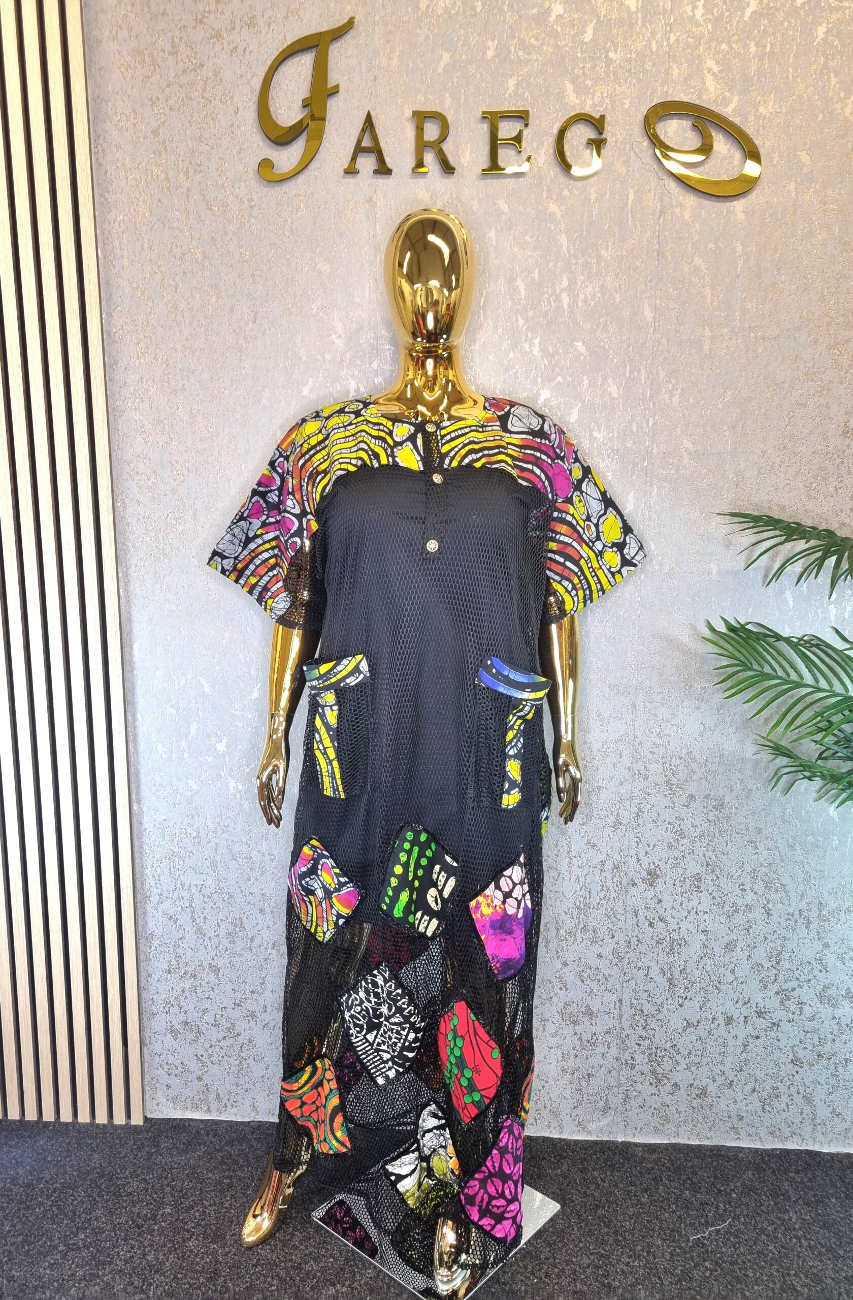 The Scuba Net Ankara patch boubou Dress is a free-flowing dress known for its comfort and unique style, suitable for a wide array of occasions.