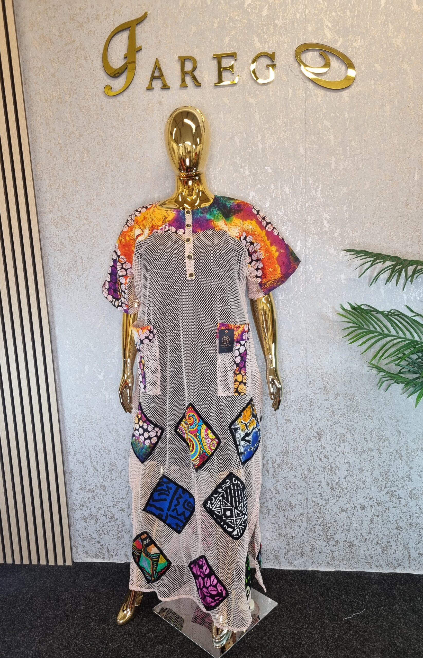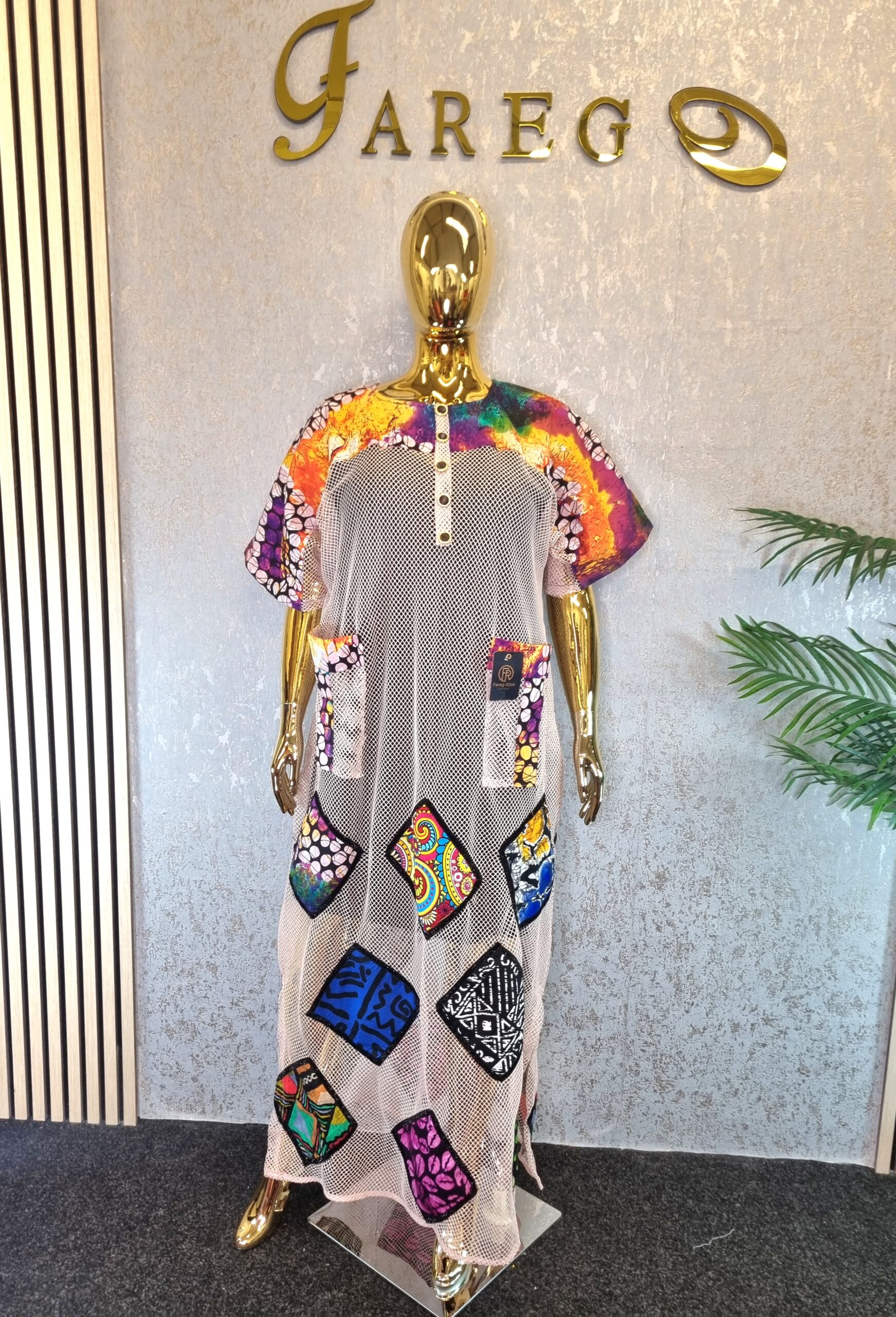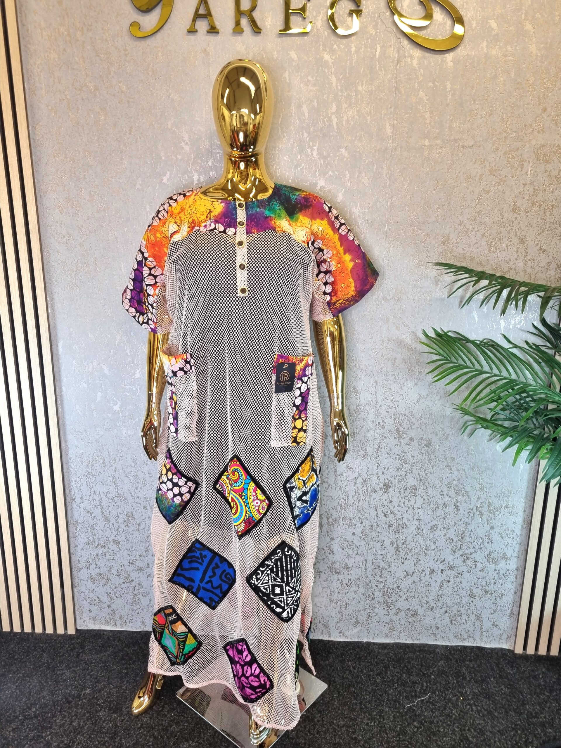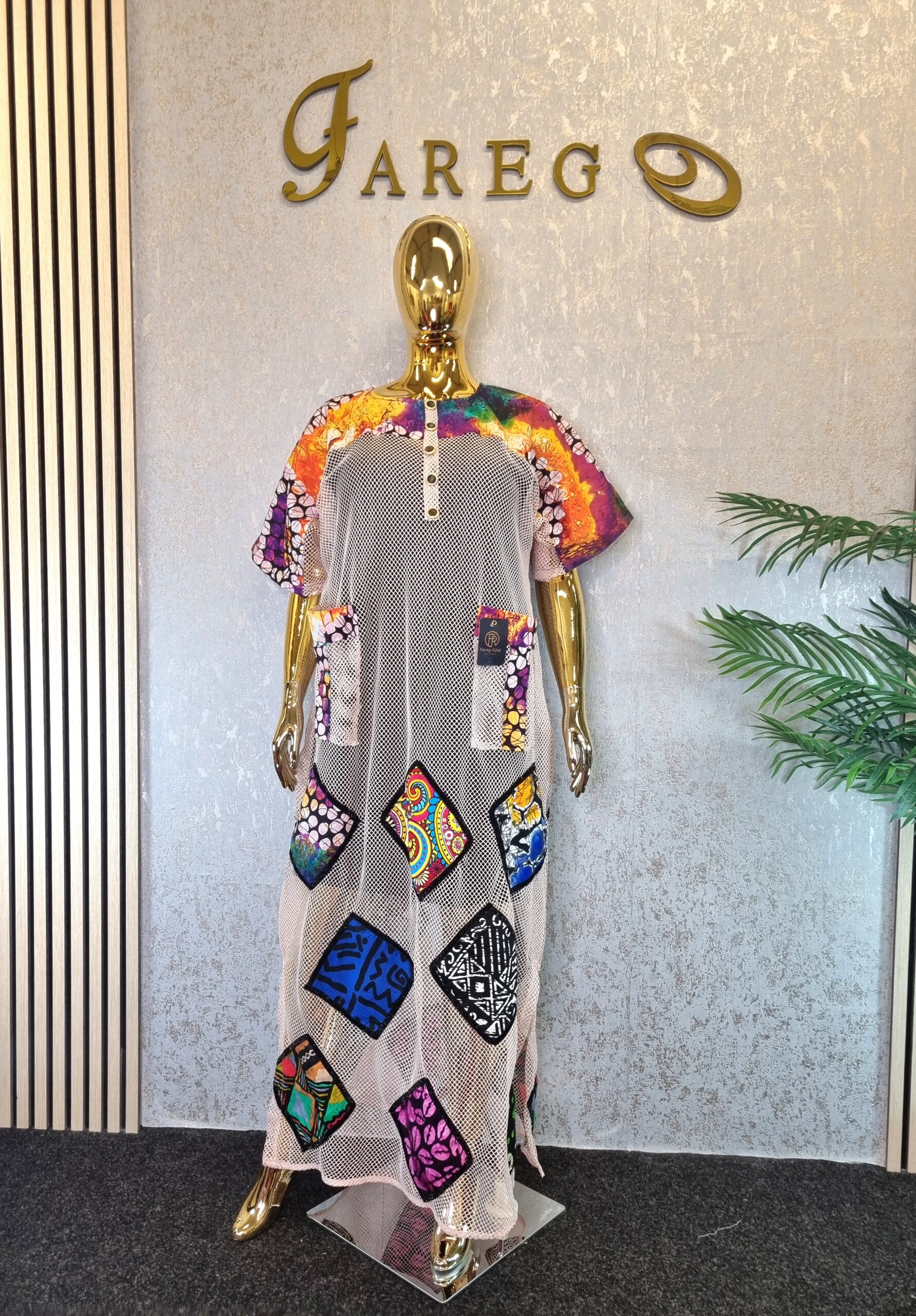 The Scuba Net Ankara patch boubou Dress is a free-flowing dress known for its comfort and unique style, suitable for a wide array of occasions.