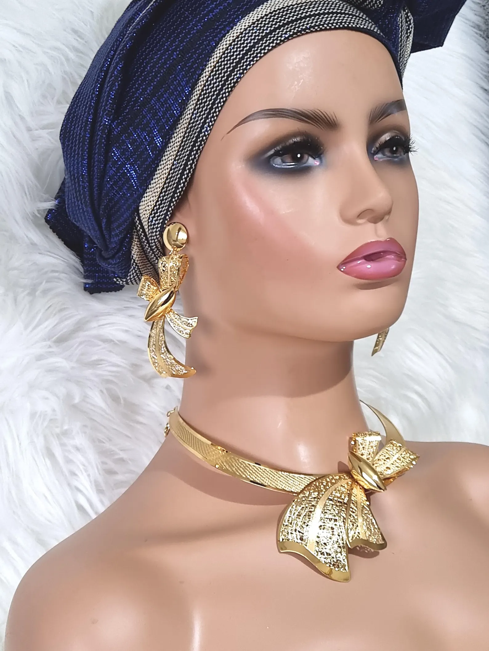 Gold Plated Party Jewellery Set Necklace, Earrings, Bracelet & Ring