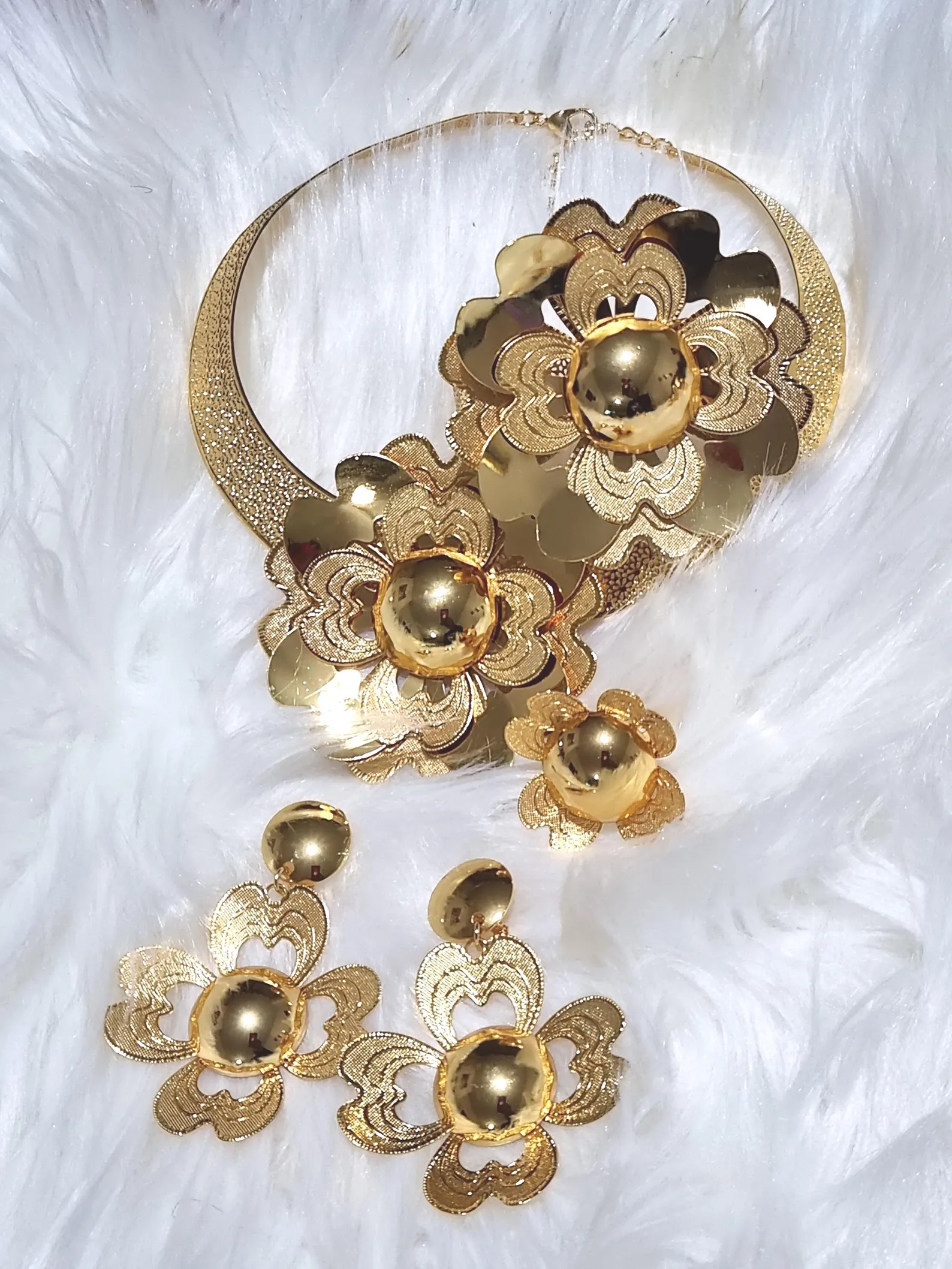 Gold Plated Party Jewellery Set: Necklace, Earrings, Bracelet & Ring