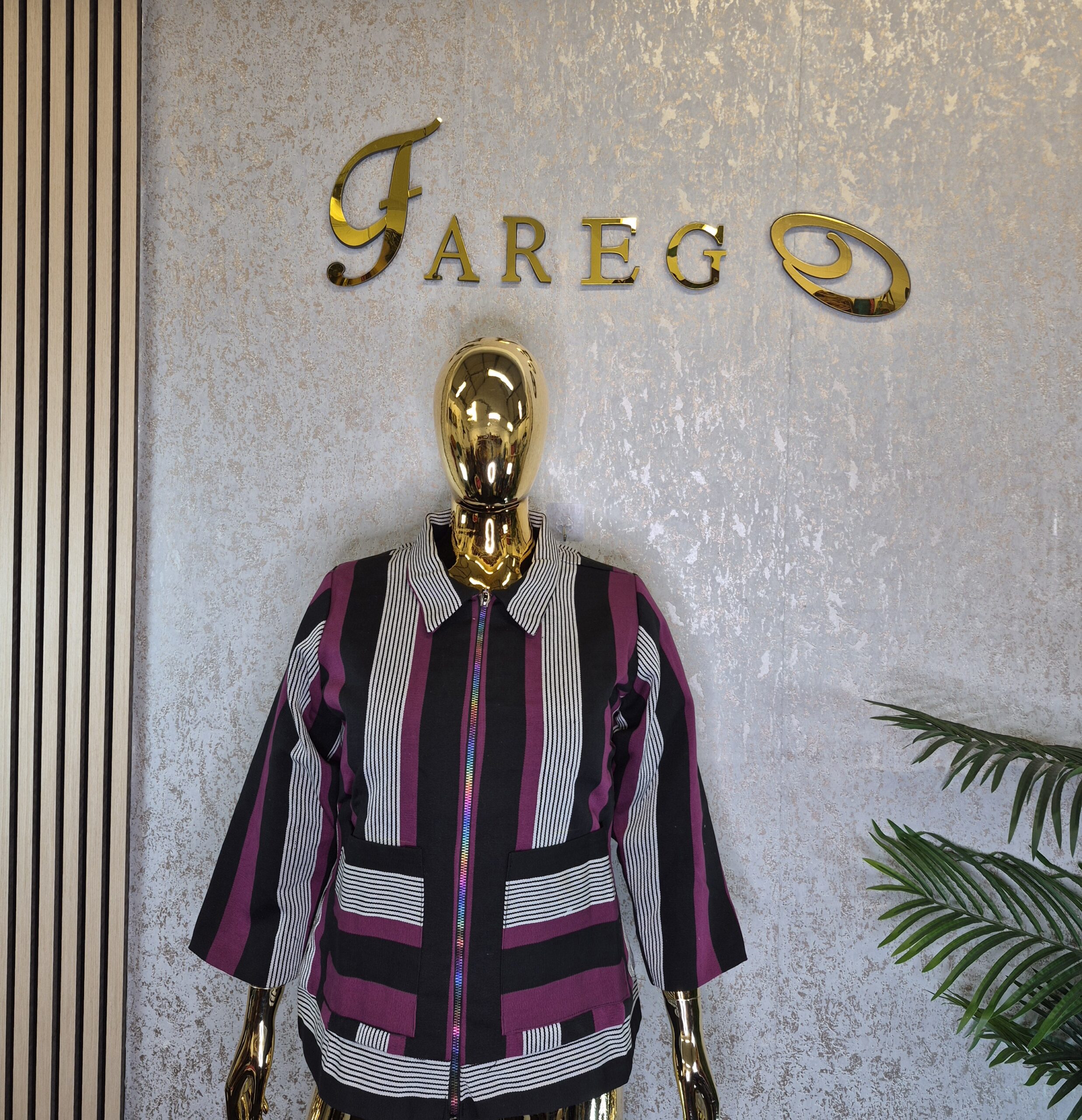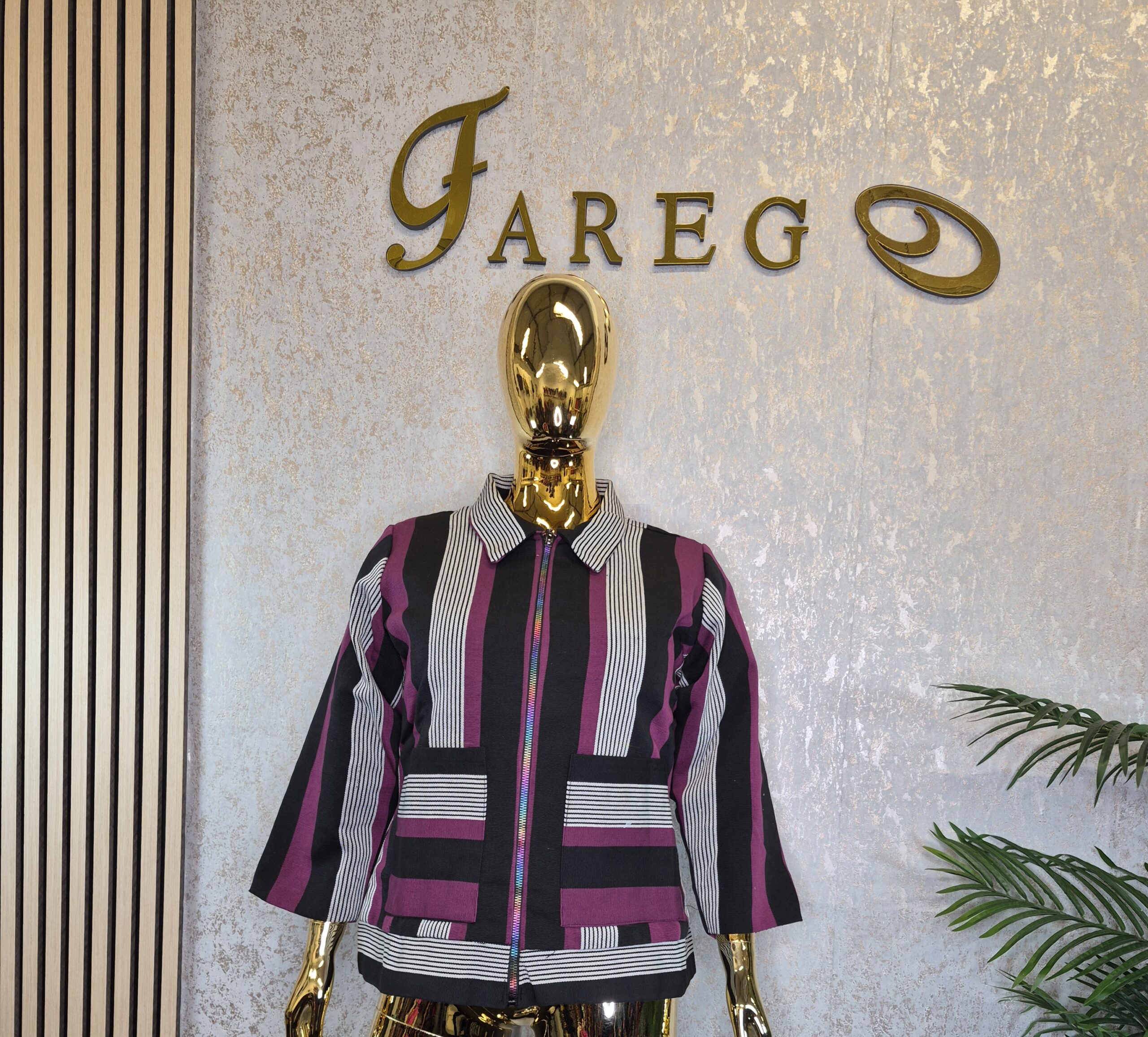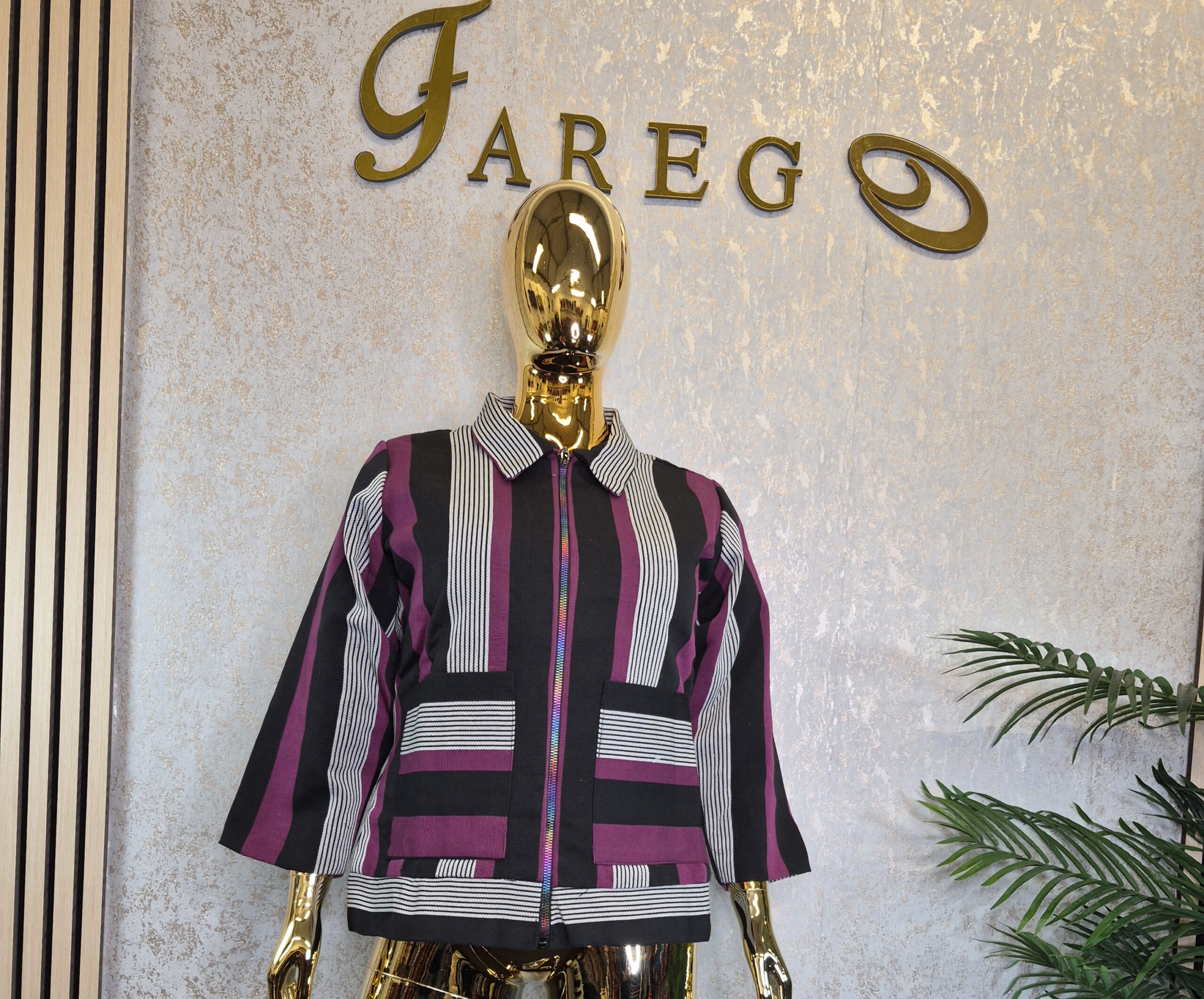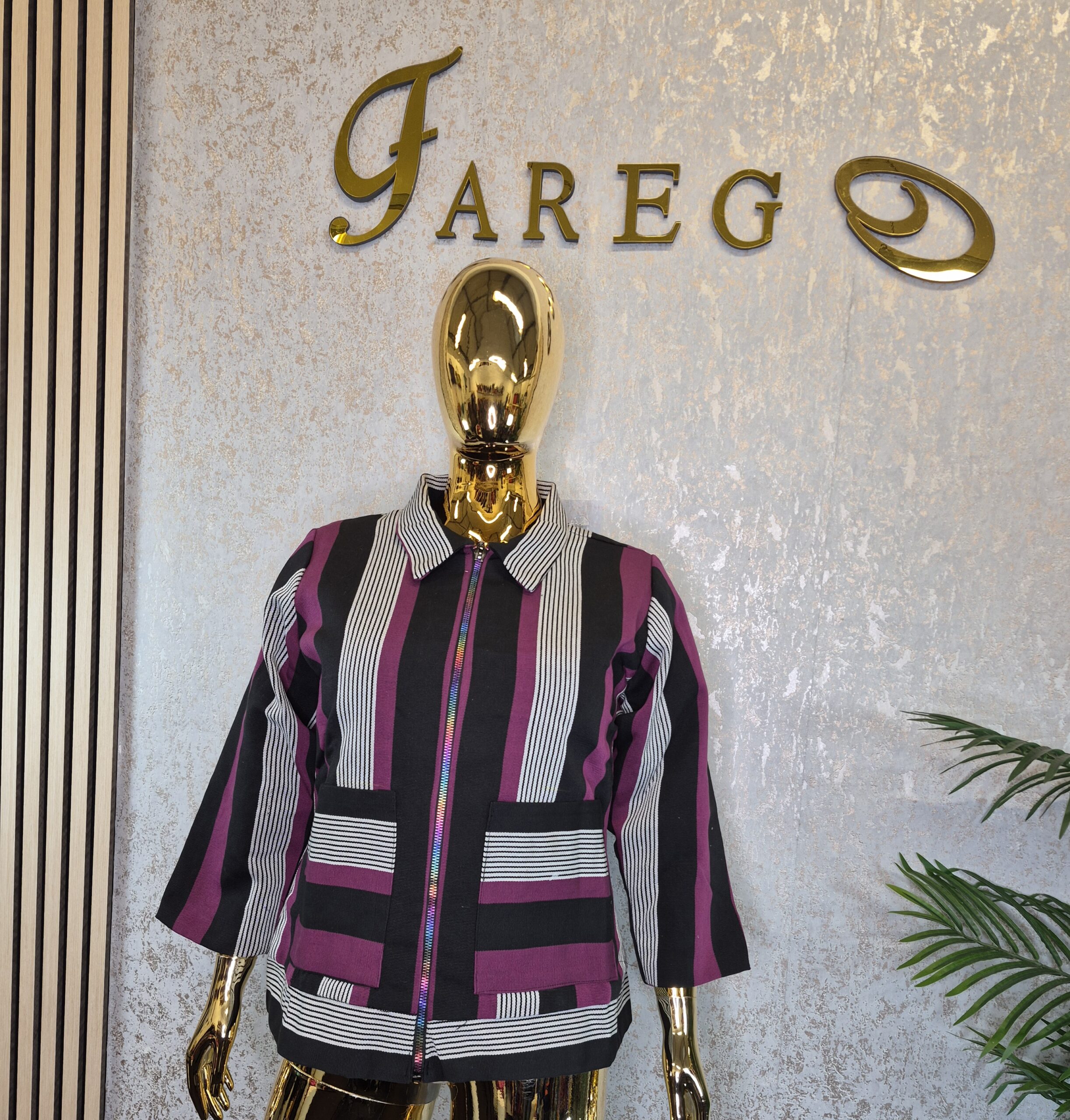 This stunning handwoven striped blazer blends tradition with modern fashion.